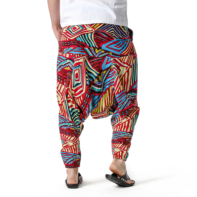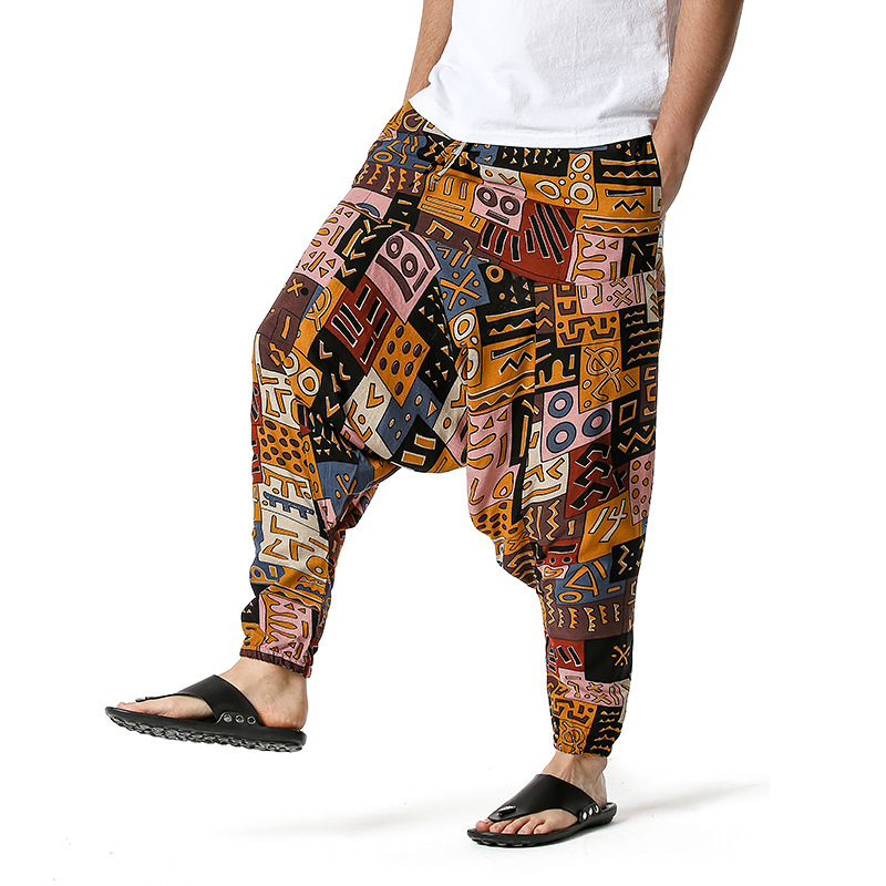 Men Casual Cotton Harem Pants Bohemian Style Joggers Yoga Vintage Baggy Trousers Sarouel Homme Hippy Hose HK02